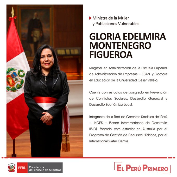 • Ministerio de la Mujer: Gloria Montenegro