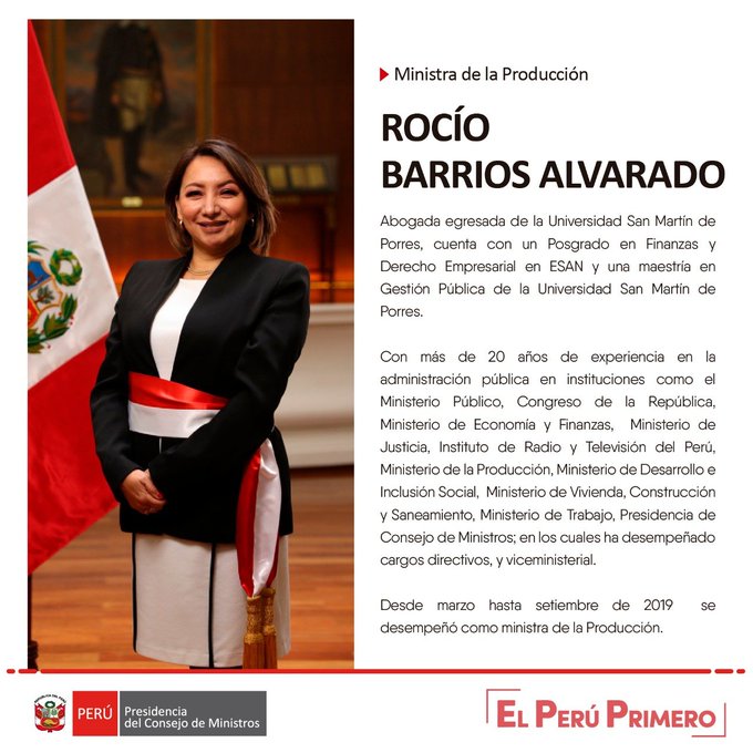 • Ministerio de la Producción: Rocío Barrios Alvarado