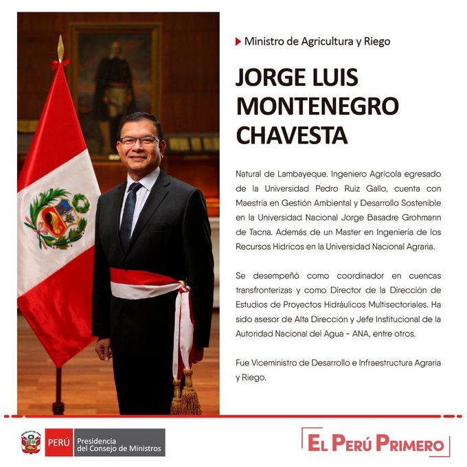 • Ministerio de Agricultura: Jorge Luis Montenegro