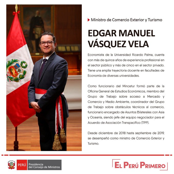 • Ministerio de Comercio Exterior y Turismo: Edgar Vásquez Vela