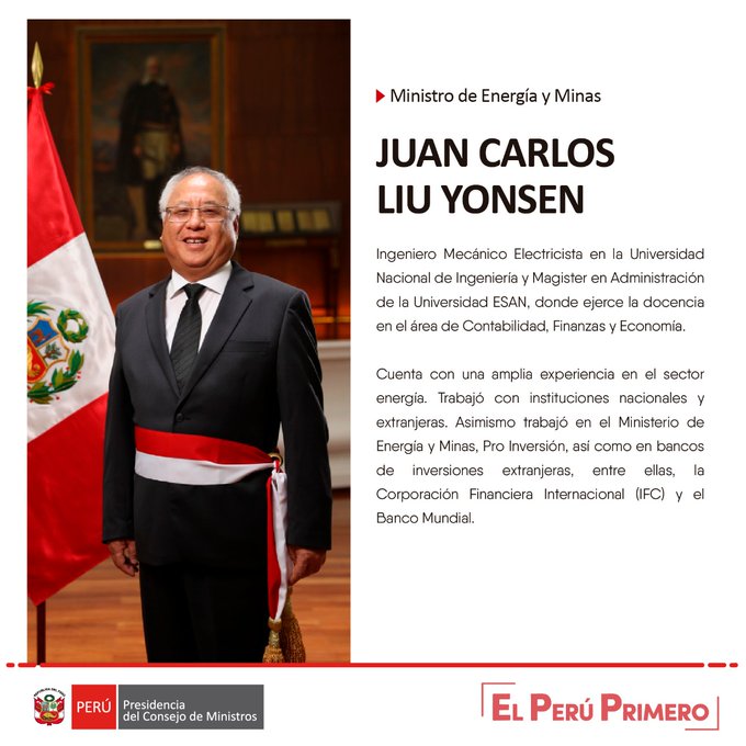 • Ministerio de Energía y Minas: Juan Carlos Liu Yonsen