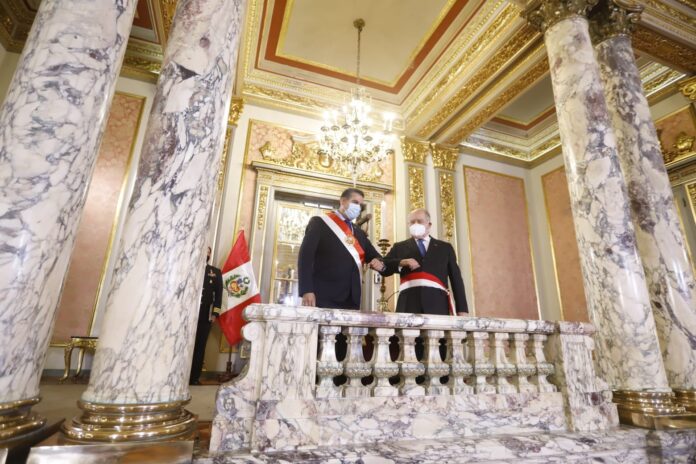 El gobierno de facto de Manuel Merino empieza a andar tras dos días de la asunción como jefe de Estado. En una ceremonia acompañado de Ántero Flores-Aráoz tomará juramento a los nuevos 18 ministros que conformarán el renovado gabinete ministerial.