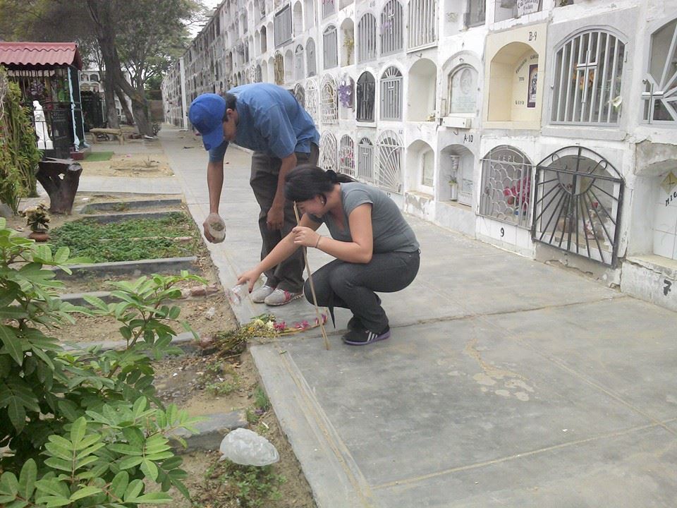 Este grupo de jóvenes identificaron los floreros que tenían agua en los diferentes nichos que hay en los cementerios. Aquí cambiaron el agua de los recipientes por arena húmeda, dado que el último domingo que se celebró el Día de la madre, la población acudió masivamente a los camposantos pero no tomó en cuenta las recomendaciones de las autoridades de salud de no usar agua en los floreros.