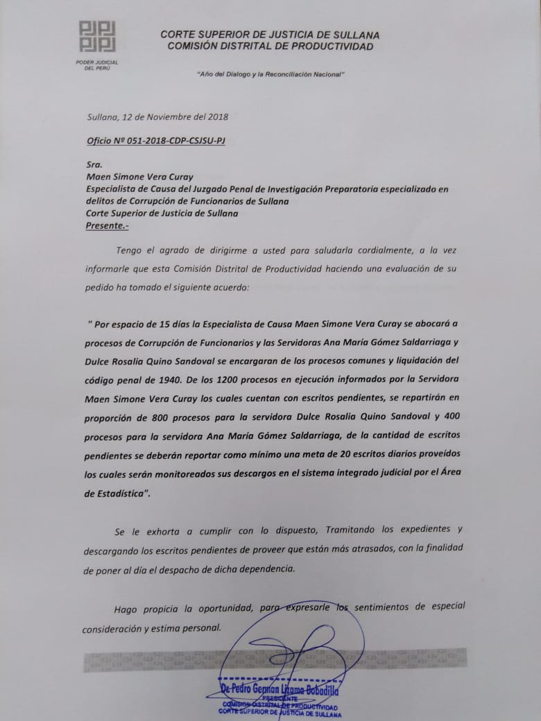 “Me he entrevistado con el juez y es cierto que se debe revisar documentos, auditorías, balances. Pero dada la dilación del caso, este se debe resolver cuanto antes, y por eso le he enviado un oficio por escrito, dando cuenta de la situación”, dijo a CUTIVALÚ el presidente de la Corte de Sullana.