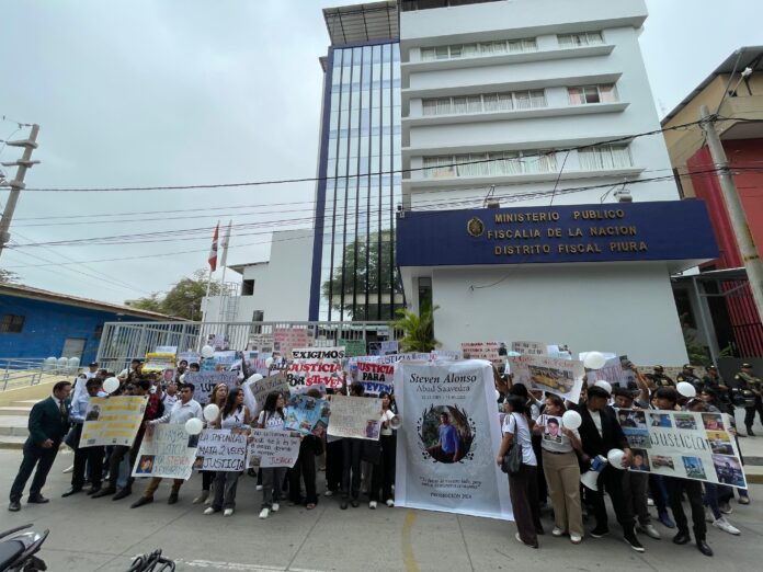 El último lunes, en Ayabaca despidieron con profundo dolor a Steven Alonso Abad Saavedra, el joven universitario de 21 años que fue asesinado de un balazo, en el distrito Veintiséis de Octubre. Mientras tanto, en Piura, sus familia y amistades protestaban en el Ministerio Público para exigir celeridad en las investigaciones y que se haga justicia
