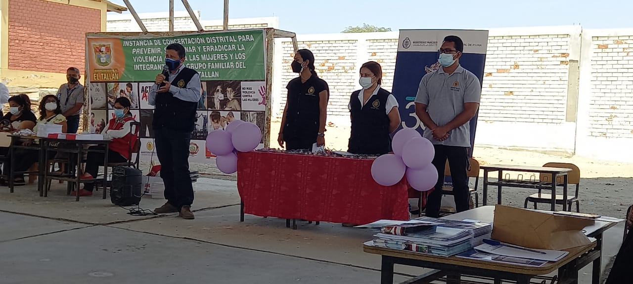 La Fiscalía especializada en delitos de violencia contra la mujer y los integrantes del grupo familiar de Piura, sensibilizaron a población del distrito El Tallán sobre cómo denunciar hechos de violencia. Este evento se realizó el último viernes 10 de diciembre en las instalaciones de la I.E Francisco Rafael Celi Cortez del C.P Caserío Zona Ventura de dicho distrito.