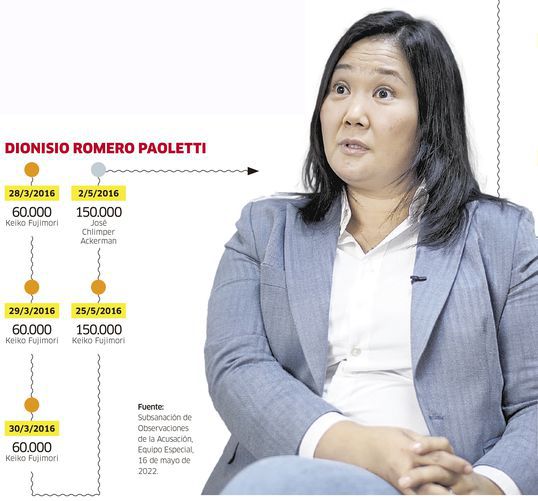 De acuerdo con la información documental acreditada por la Fiscalía, Romero proporcionó a Keiko Fujimori US$ 480.000 en 5 armadas: