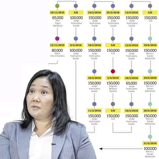 Los datos son extremadamente minuciosos, porque incluyen el día, la hora, el minuto, el mes, el año, el monto, el número de registro de salida del dinero y hasta la identidad de quienes se presentaron en nombre de Keiko Fujimori para llevarse el efectivo.