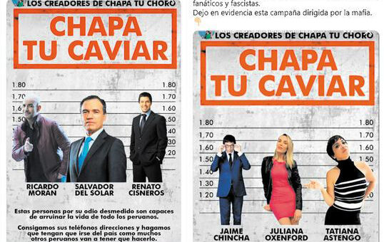 El 4to despacho de la Fiscalía Especializada en Prevención del Delito inició una investigación preliminar contra quienes resulten responsables de promover la campaña de acoso y hostigamiento llamada ‘Chapa tu caviar’, la cual fomenta agresiones contra periodistas, políticos y artistas que se han mostrado en contra de la candidatura de Keiko Fujimori,