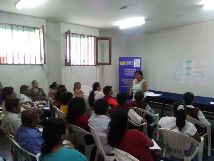 En el marco del proyecto para “Fortalecer la articulación entre estado y sociedad civil para la prevención y la reducción de la violencia de género en Piura”, Cutivalú llevó a cabo este sábado 30 de marzo una capacitación sobre los tipos de violencia en la prefectura regional de Piura, dirigida a los tenientes gobernadores del distrito Veintiséis de Octubre.