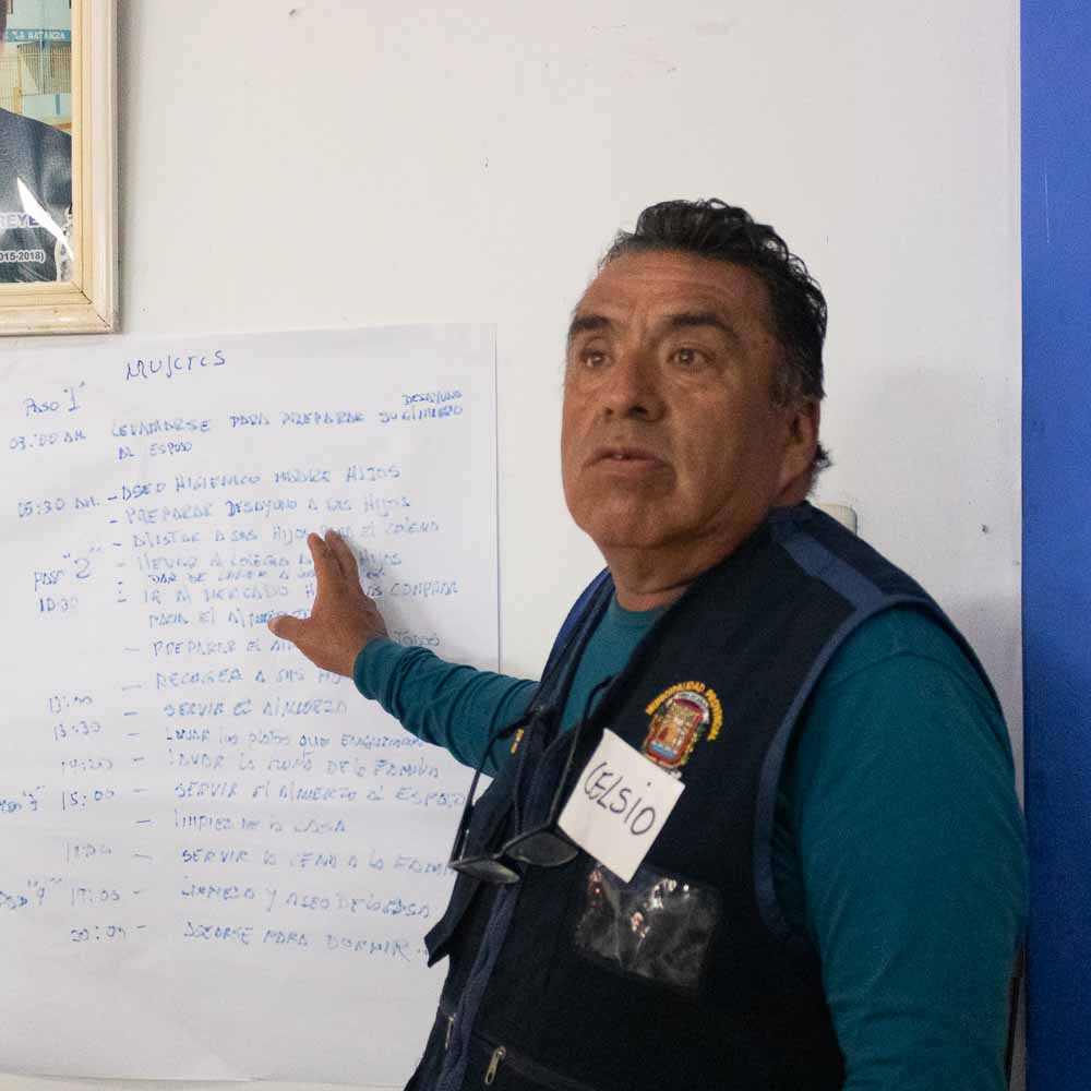 Asimismo, en el proyecto se cuenta con otro Programa de capacitación dirigido a líderes comunitarios hombres, funcionarios, familiares de las participantes en temas como nuevas masculinidades y corresponsabilidad en el entorno familiar, el reparto de tareas y de responsabilidades como forma de mejora de las relaciones familiares, la equidad y paridad en el hogar.