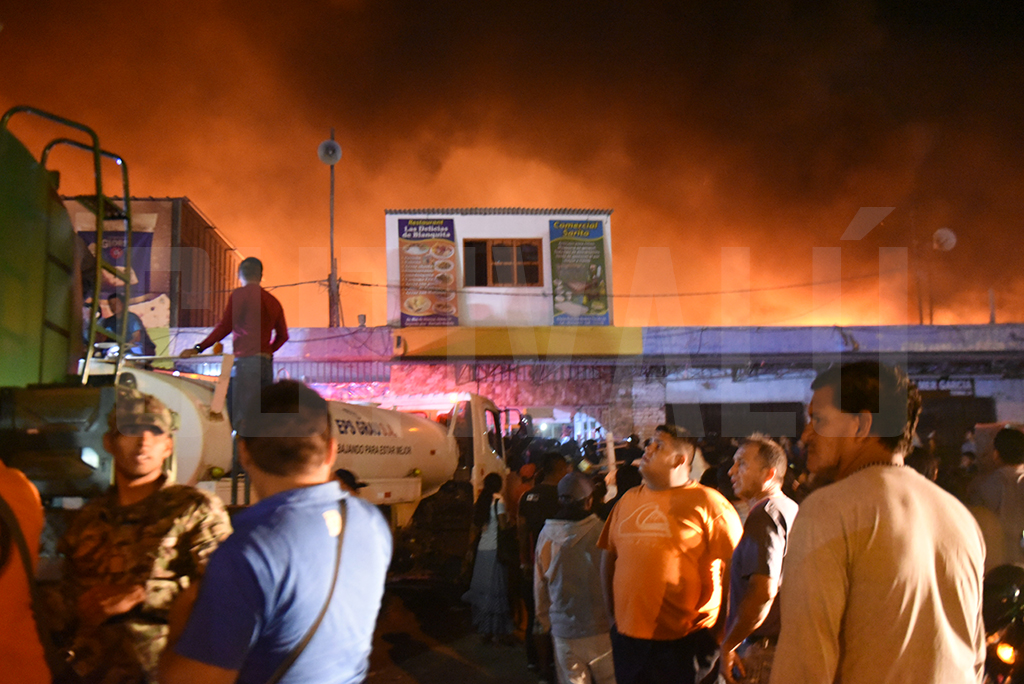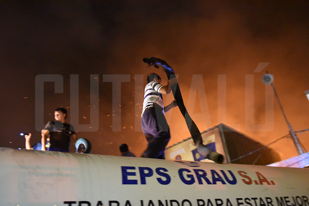 Dirigentes y comerciantes del mercado anexo culpan a los ambulantes de haber generado el incendio. Se convocó a las compañías de bomberos de Piura, Catacaos, Sullana, Marcavelica, Paita, entre otras.