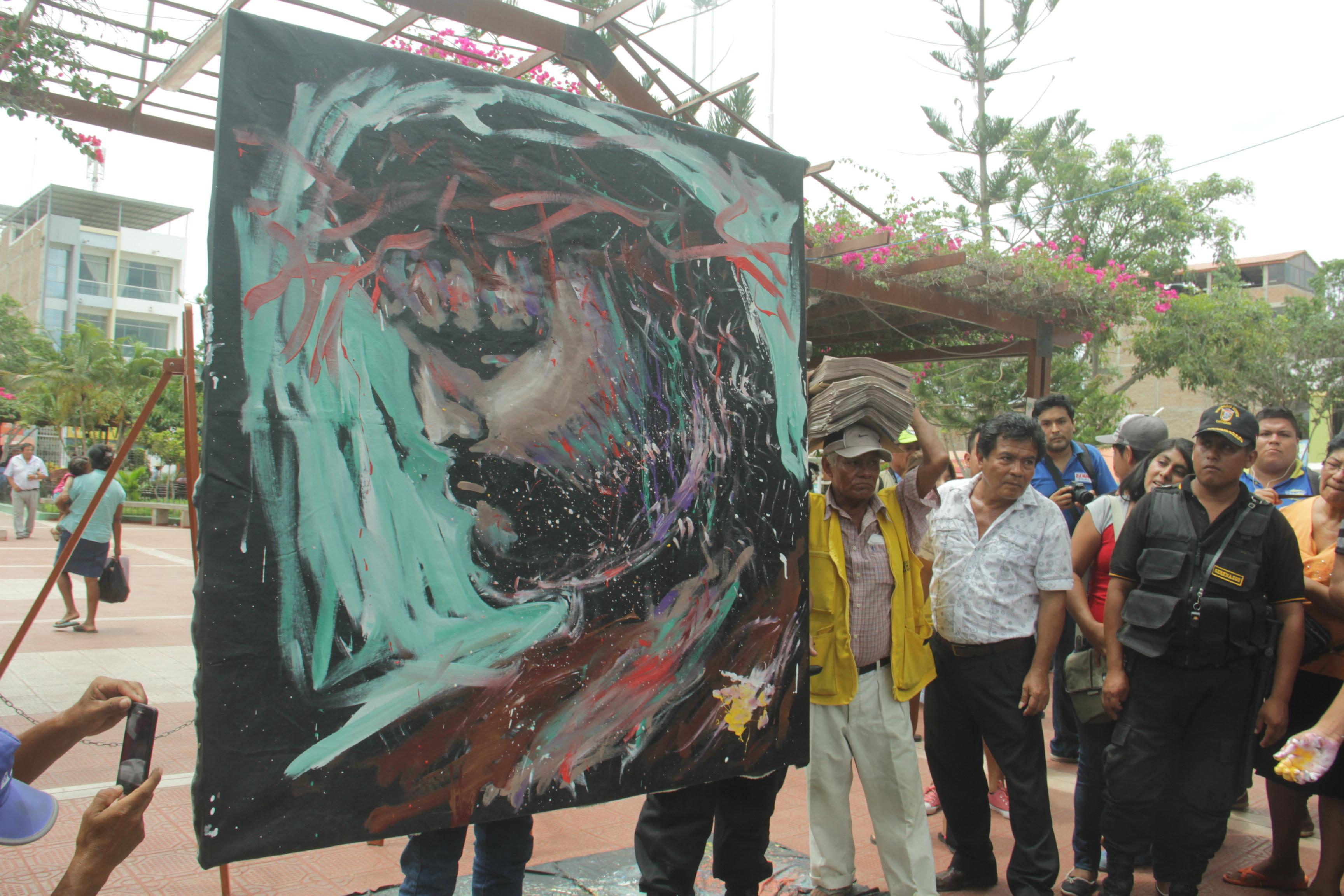 [Fotos] Catacaos: Rod Martin pintó a Cristo en menos de 7 minutos