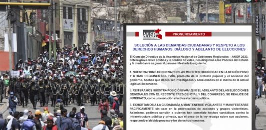 El Consejo Directivo de la Asamblea Nacional de Gobiernos Regionales (ANGR 2023) emitió un pronunciamiento en el que señala que el adelanto inmediato de elecciones generales es la solución al caos político que vive el país. “Reiteramos nuestra posición para que el adelanto de las elecciones generales con recorte presidencial y del Congreso se realice … Sigue leyendo Gobernadores regionales exigen diálogo y elecciones inmediatas