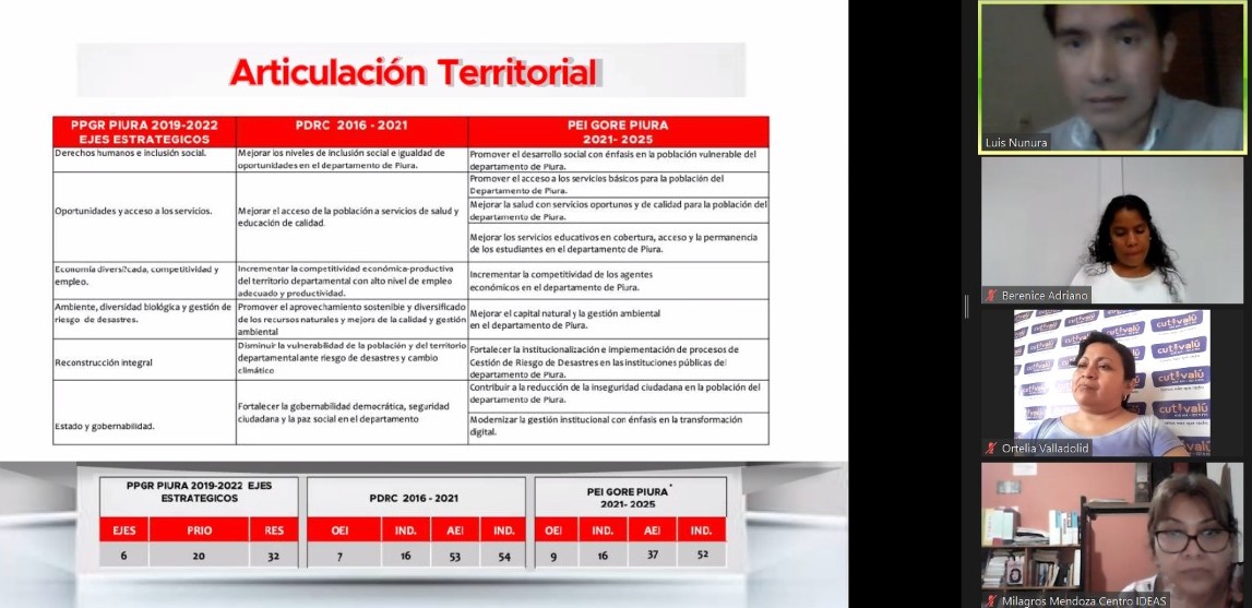 El Gobierno Regional de Piura presentó el Plan Estratégico Institucional y sus metas a lograr del 2021 al 2025 a la Comisión de Seguimiento al Pacto por la Gobernabilidad 2019 – 2022. El plan del GORE ya ha sido socializado con las 25 unidades ejecutoras de la misma institución para el seguimiento correspondiente.