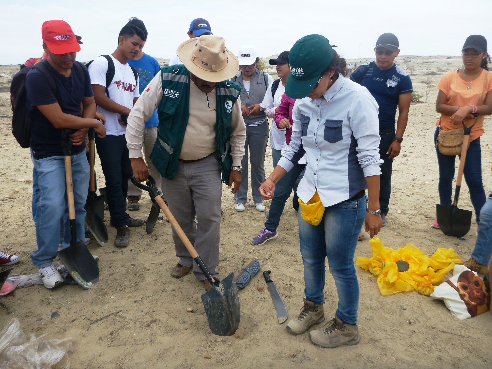 En el lugar ubicado a 50 minutos del centro urbano de La Arena, los profesionales de Serfor Piura delimitaron el área a reforestar y orientaron a los más de 50 universitarios en la siembra directa.