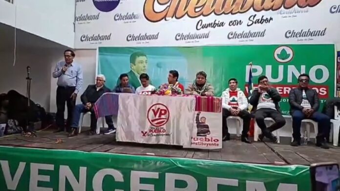 Guillermo Bermejo arribó a la región de Puno en campaña proselitista, donde lo recibieron una nutrida cantidad de sus bases regionales y los representantes de los partidos que integran la alianza electoral Venceremos.