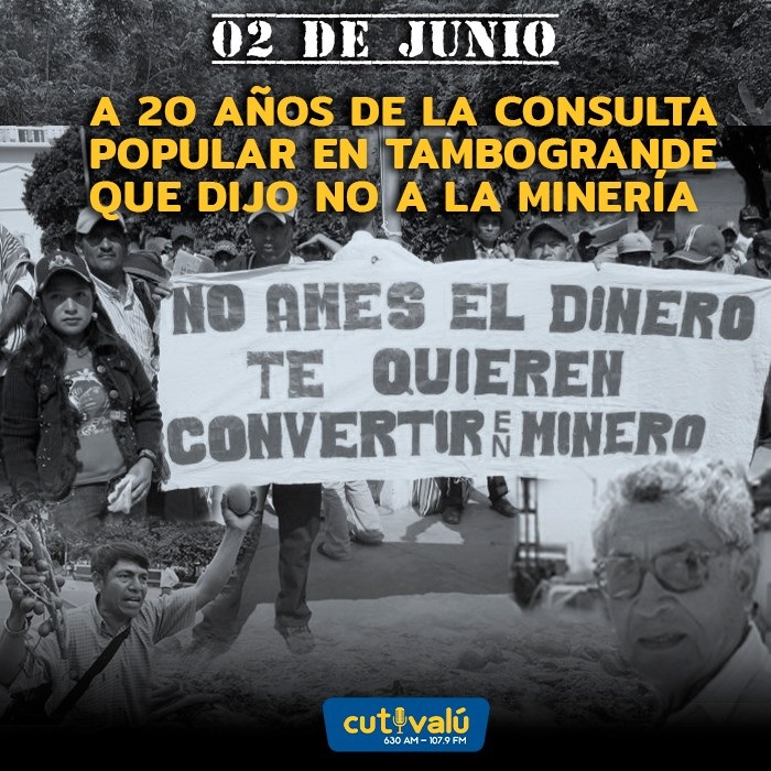 Este jueves 2 de junio se cumplieron 20 años de la histórica consulta popular desarrollada en Tambogrande, donde miles de tambograndinos se apersonaron de manera voluntaria hacia las urnas para decidir sobre su propio modelo de desarrollo, basado en lo agropecuario, desterrando a la amenazante explotación minera que se quería imponer en el valle de San Lorenzo.