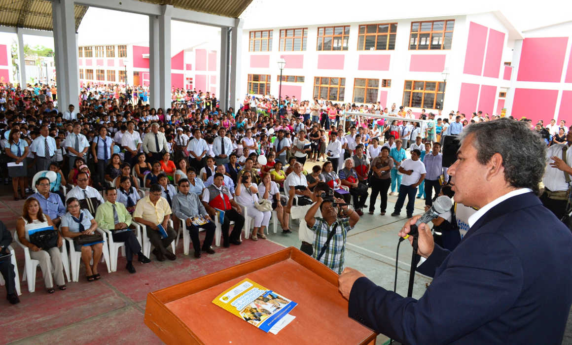 El presidente regional, Reynaldo Hilcbk Guzmán, tuvo a cargo hoy la ceremonia de apertura del Buen Inicio del Año Escolar 2015, en las instituciones educativas «Miguel Cortés» de Castilla y «Ricardo Palma» de Casagrande en La Arena, las cuales contaron con la presencia de las principales autoridades locales, estudiantes y padres de familia.