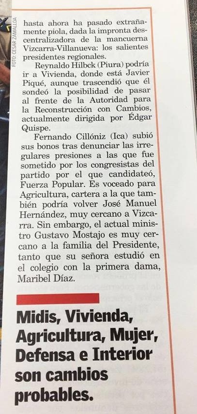 El trascendido fue publicado hace unos días por la revista Caretas, que especulaba sobre Reynaldo Hilbck como ministro de Estado o director ejecutivo de la Autoridad Para la Reconstrucción con Cambios (ARCC).