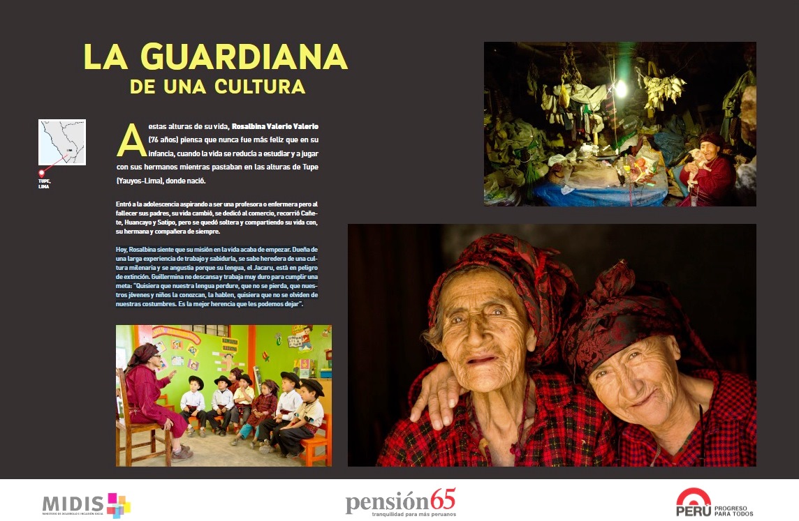 “Creemos haber contribuido en evidenciar a una población que permanecía invisible para la sociedad, que incluso hasta carecía de DNI y se encontraba fuera del sistema”, dijo Villalobos Castillo, tras detallar que en esta exposición fotográfica se cuentan historias de la realidad del adulto mayor y cómo se encuentran luego de la intervención del Estado, a través de Pensión 65, programa social del Ministerio de Desarrollo e Inclusión Social (MIDIS).