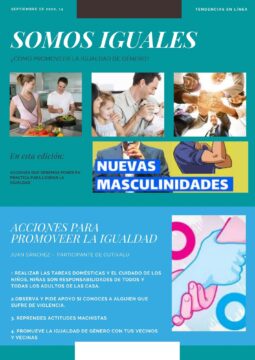 como parte del compromiso los varones aprendieron a elaborar boletines informativos con el apoyo de una ilustradora gráfica. Finalmente reiteraron su compromiso en difundir los boletines sobre prevención de violencia de género y nuevas masculinidades para concientizar a más varones.