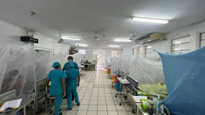 El Hospital de Sullana atiende hasta a dos niños con dengue en una sola cama por horas. El médico infectólogo Luis Espinoza Venegas señala que se necesita un nuevo espacio físico para implementar nuevas camas de hospitalización.