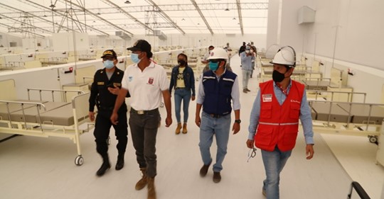 DATO: En Sullana, también empezó a funcionar el hospital temporal en el campo ferial de con capacidad para 100 camas. Estos ambientes contarán con concentradores de oxigeno, rayos X, ecógrafos, desfibriladores, monitores de funciones vitales, aspiradores de secreciones, etc.