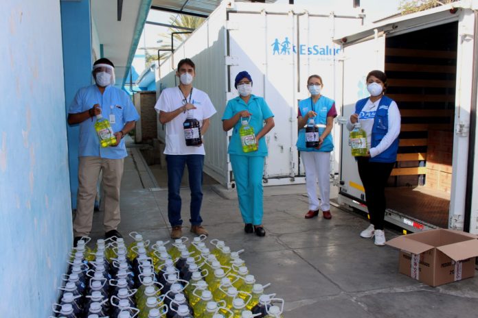 La entrega consistió en 2600 litros de alcohol, 780 galones de lejía, 750 galones de jabón líquido antibacterial y 380 galones de limpiador de piso desinfectante que sumarán a brindar medidas de prevención adecuadas para el trabajo de los profesionales de la salud y la atención de los pacientes en la región.