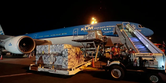 El primer lote de 300 000 vacunas de Sinopharm contra el coronavirus llegó al Perú el domingo 7 de febrero del 2021, en el vuelo AF480, procedente del aeropuerto de Beijing en China, con parada en el aeropuerto parisino Charles de Gaulle de Francia y con arribo final en el aeropuerto Jorge Chávez de Lima.