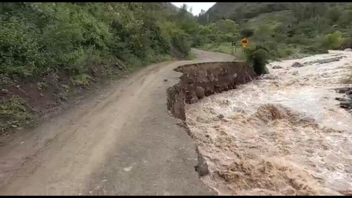 En Huancabamba se ha registrado una crecida en el caudal del río por las fuertes lluvias de los últimos días. Se ha restringido el pase por daños en la carretera La Perla – Jacocha, cerca a la Quebrada Chula.
