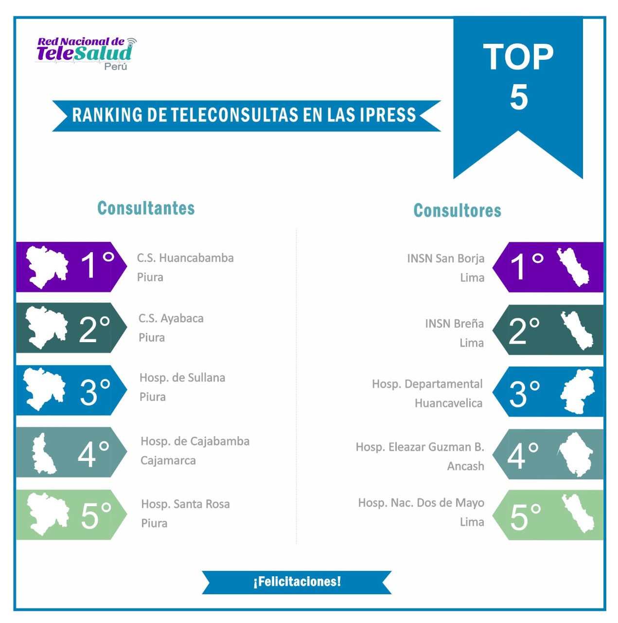 La información fue brindada por la Red Nacional de Telesalud del Minsa, a través del ranking del top 5 de teleconsultas en Instituciones Prestadoras de Servicios de Salud (IPRESS), donde el centro de salud I-4 de Huancabamba se ubica primero en la evaluación con 220 atenciones virtuales, seguido del centro de salud de Ayabaca, Hospital de Sullana, Hospital de Cajabamba en Cajamarca y Hospital Santa Rosa de Piura. Siendo estos cinco primeros, los reconocidos por el ente nacional.