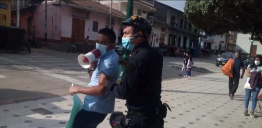 Cuatro jóvenes, dos de ellos menores de edad, fueron detenidos la tarde del viernes 13 de noviembre, cuando realizaban una marcha pacífica en la Plaza de Armas de Huancabamba. Se trata de Emmanuel Carmen Huamán, de 16 años; Samuel Rodríguez Aguilera, de 17; Valentín Silva Chinguel, de 22 y Juan Silva Chinguel, de 28. … Sigue leyendo Huancabamba: PNP detuvo a cuatro jóvenes durante manifestación pacífica