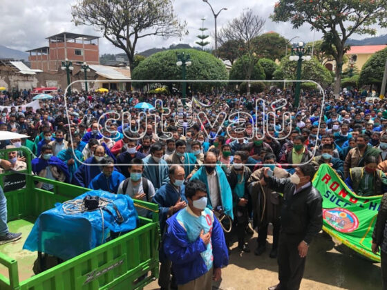 Pese a que no pudieron viajar a Piura, miles de ronderos y ronderas de Huancabamba marcharon contra la sentencia del Tribunal Constitucional que les quita facultades y también contra la minera Río Blanco.