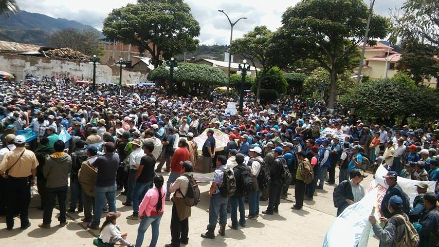 Desde las nueve de la mañana al menos 4.000 ronderos se movilizan en la provincia de Huancabamba como medida de protesta ante la intención del gobierno de que el proyecto minero reinicie sus operaciones. Una comisión conformada por dirigentes y ronderos de la zona llegó hasta la municipalidad para exigirle al alcalde de Huancabamba, Marco Velasco se pronuncie sobre este tema.