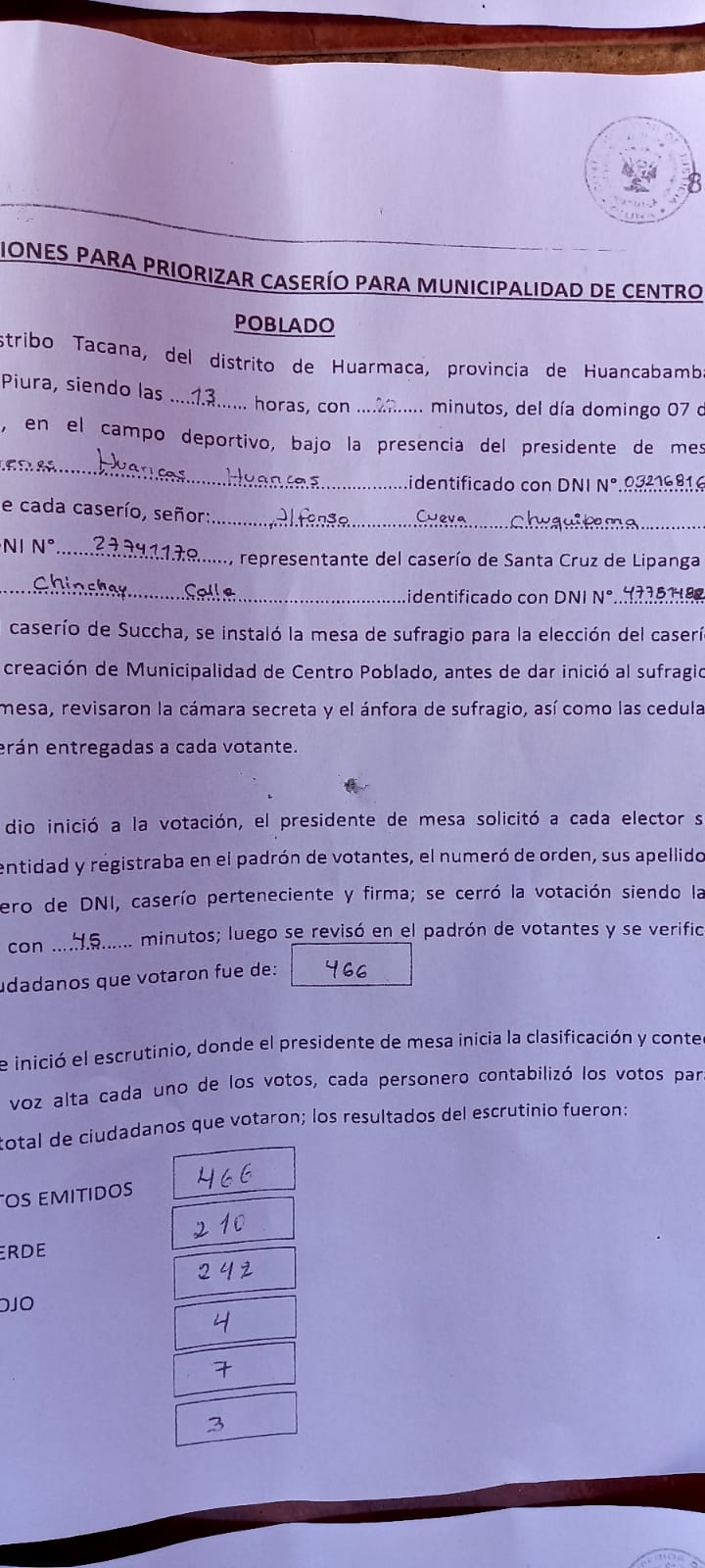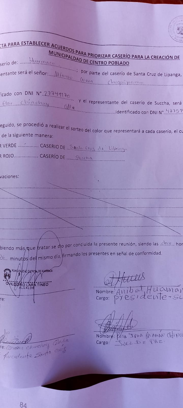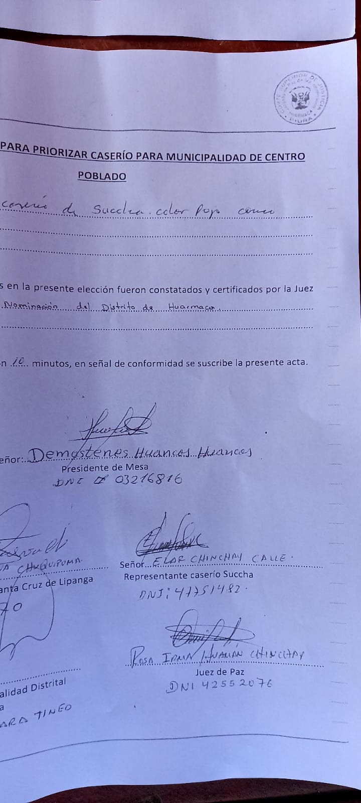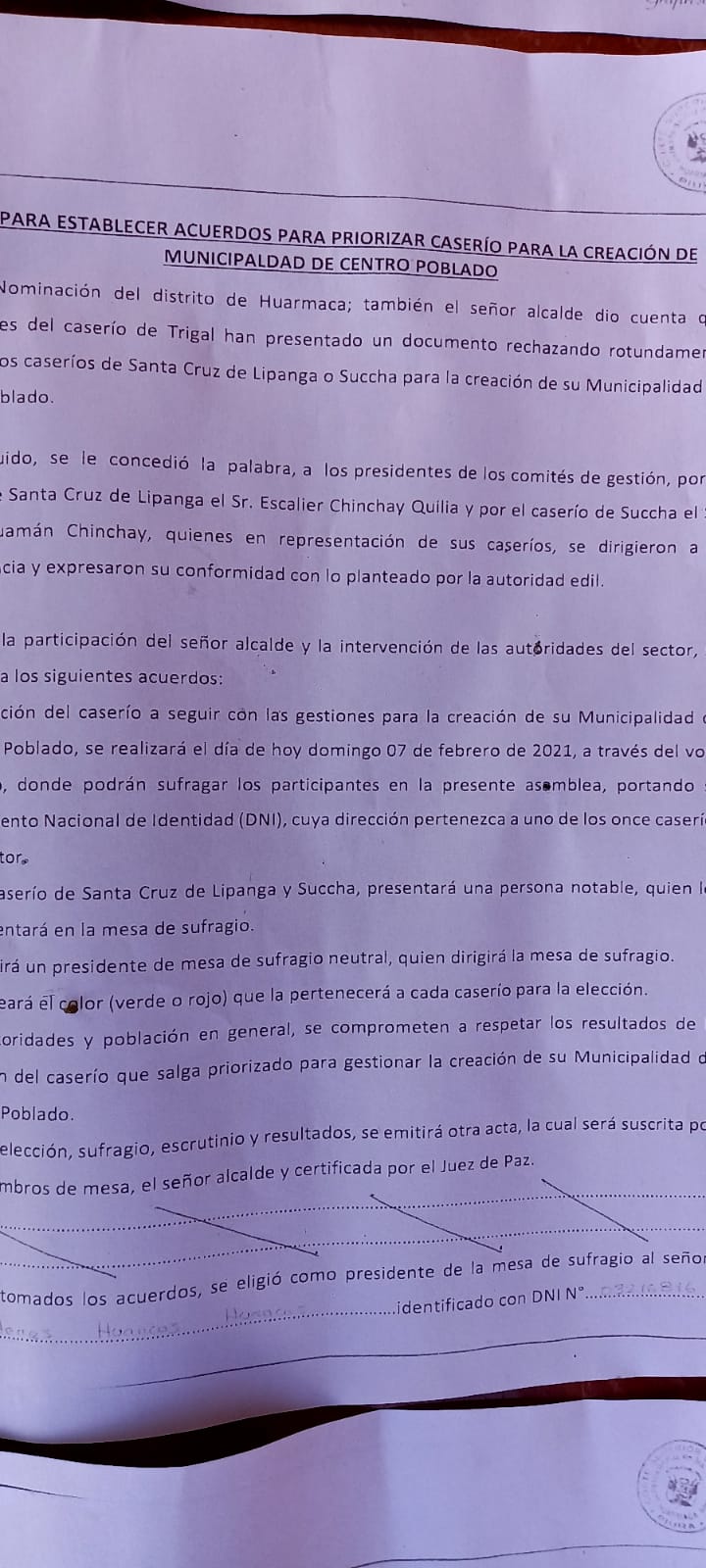 Como se sabe, los pobladores del caserío Succha, realizaron una consulta popular el pasado 07 de febrero, convocada por el alcalde de Huarmaca, Ovildoro Lara, en la cual, con 242 votos a favor del caserío de Succha se decidió gestionar la creación de la municipalidad de centro poblado.