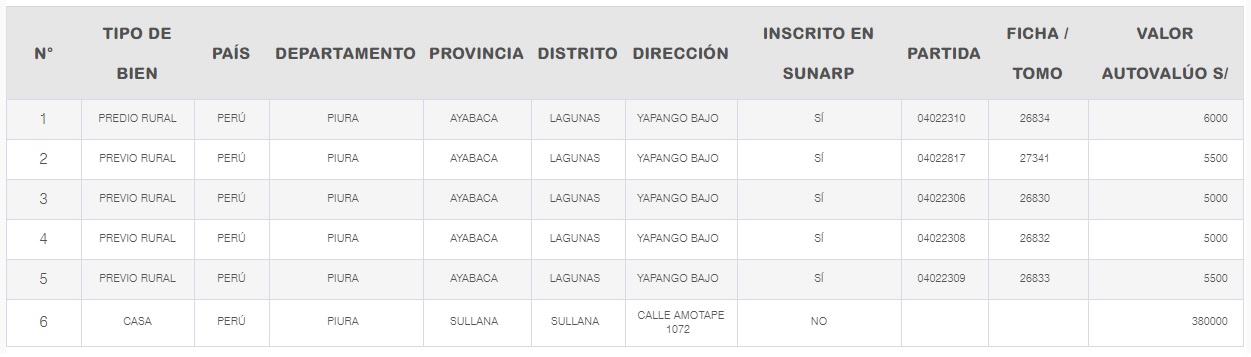 Bienes inmuebles que Humberto Marchena declara tener.