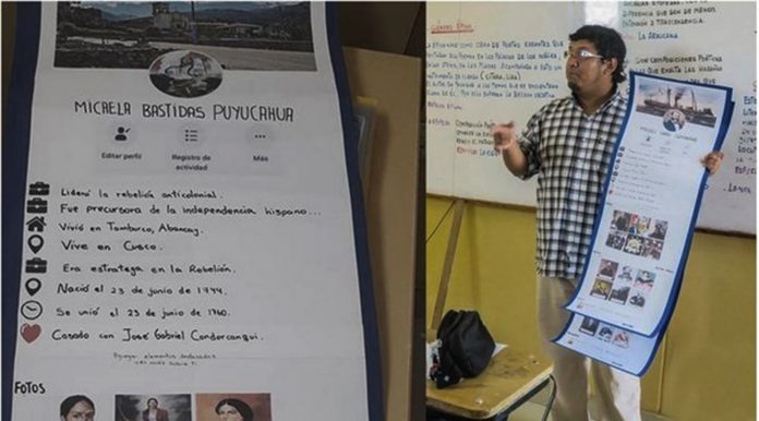 Pablo Arias Santos decidió que sus alumnos armen un perfil de Facebook de los héroes de la historia peruana para que investiguen y sepan “sus intereses”, “amigos en común” y “dónde trabajaron”.