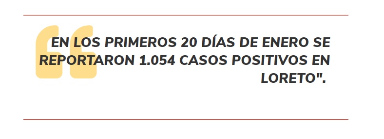 Según la Dirección Regional de Salud (Diresa) de Loreto, en los primeros 20 días de enero se reportaron 1.054 casos positivos, de los cuales 101 permanecen hospitalizados y 744 en aislamiento domiciliario. Además, 14 personas han fallecido en este lapso. Lo más grave, indican, es que hasta el jueves 21 de enero solo quedaban 4 camas UCI libres, de las 26 con las que cuenta esta región para enfrentar la pandemia.