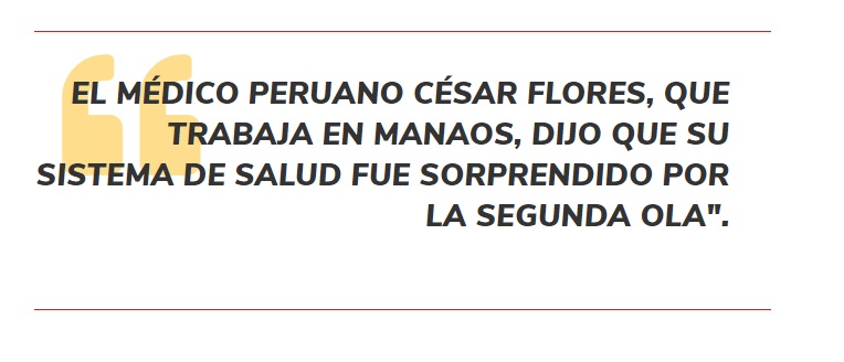 El médico intensivista contó que el sistema de salud en Manaos fue sorprendido por la segunda ola. “Por el número de casos en Manaos, más del 80% de personas, esperábamos alcanzar una inmunidad de rebaño en octubre del año pasado”. Eso generó que muchas áreas Covid-19 de los hospitales se desactivaran. “Aparentemente estábamos tranquilos. Pero, en diciembre, el anuncio de una nueva variante ocasionó un incremento brusco del curso epidemiológico y de los cuadros clínicos de los pacientes”, dijo.