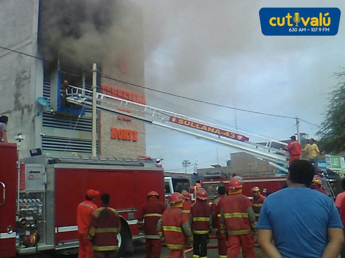 El siniestro empezó a la 1:00 a.m., de hoy miércoles, y hasta el momento no se logra controlar totalmente el fuego. Participan en los trabajos alrededor de 25 bomberos de Sullana, Bellavista y Marcavelica, agentes de Serenazgo de Sullana y Policía Nacional.