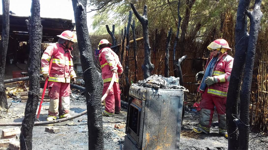 Los Bomberos del distrito de Catacaos impidieron que la tragedia fuera mayor, pero no pudieron impedir que el fuego devorase cuatro hogares.