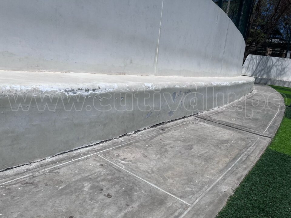 Sin embargo, tal como lo corrobora la misma Contraloría, esta obra no cumplió con lo solicitado por el expediente técnico. Tal es el caso de la pared de más de 20 metros que no presenta porcelanato, o la misma pintura que ya presenta decoloración a 70 días de uso.