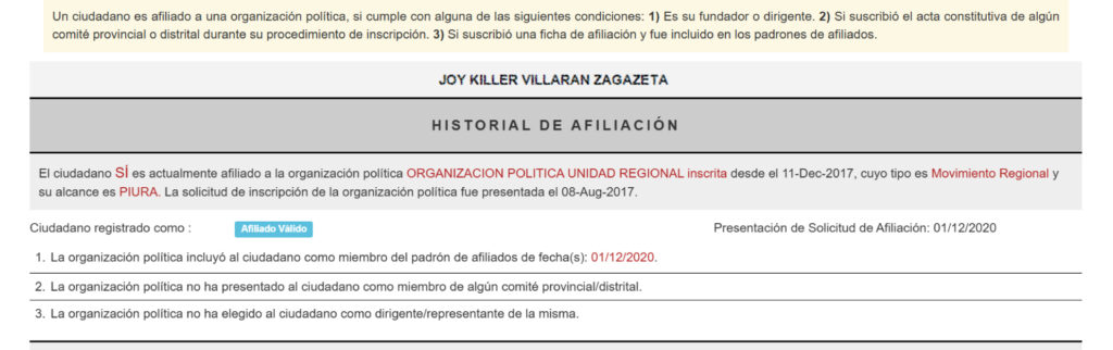 El regidor de Minoría, Ricardo Acuña, recordó el sospechoso vínculo que existe entre el supervisor de la obra, Joy Killer Villarán Zagazeta, y el alcalde de Piura, Gabriel Madrid. Villarán aún está afiliado al movimiento político Unidad Regional, de acuerdo al Registro de Organizaciones Políticas (ROP).