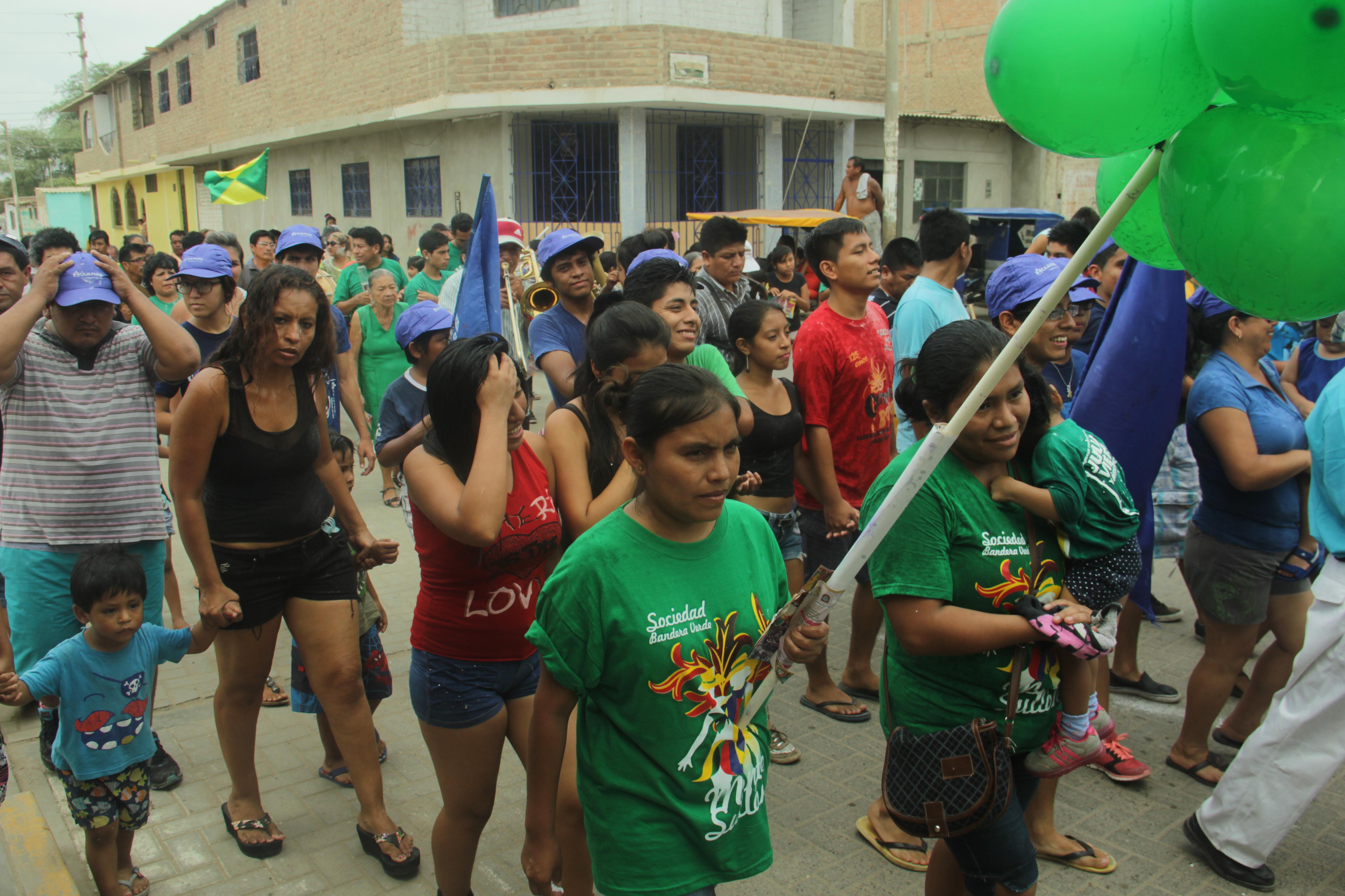 En su saludo, la anfitriona de la bandera Multicolor, Teódula Taboada Oliva, la Tía Lula, invitó a todos jugar el carnaval y compartir lo que Catacaos ofrece, pero pidió no olvidar que por encima de todo debe haber respeto.