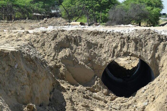 Instalan una alcantarilla en el dren del asentamiento Villa Hermosa, en Veintiséis de Octubre, para evitar la inundación de las viviendas de la zona y los daños a Vía de Evitamiento.