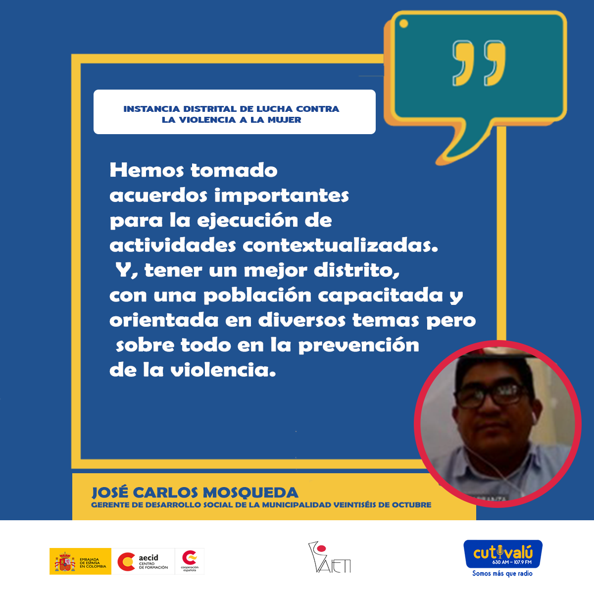 Y en esta ocación, participaron de la actividad la Gerencia de Desarrollo Social de la Municipalidad de Veintiséis de Octubre, el Centro de Emergencia Mujer de Santa Julia, Demuna y Cutivalú. Con la finalidad de seguir trabajando articuladamente contra la violencia hacia la mujer en el distrito Veintiséis de Octubre.