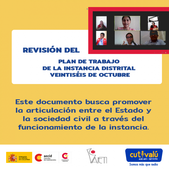 Mesa de trabajo, a través de la aplicación Zoom, entre las y los miembros de la Instancia Distrital de Veintiséis de Octubre, para revisar y actualziar el Plan de trabajo de la instancia, cuyo objetivo es promover la articulación entre el Estado y la sociedad civil.