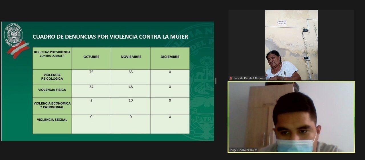 Desde la Comisaría de San Martín, el comandante de la PNP Jorge González Rojas informó que durante octubre recibieron 111 denuncias, 75 de ellas por violencia psicológica. En noviembre los casos aumentaron a 143, con 85 de estas denuncias presentadas por violencia psicológica. El segundo tipo de violencia más recurrente es la violencia física.