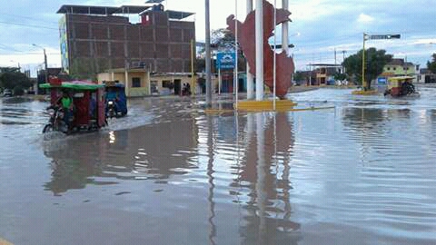 Mientras tanto, diferentes lugares del Bajo Piura amanecieron inundados luego de soportar una intensa lluvia que cayó desde las ocho de la noche del lunes y continuó toda la madrugada.